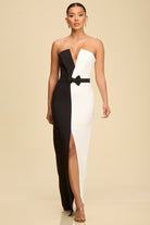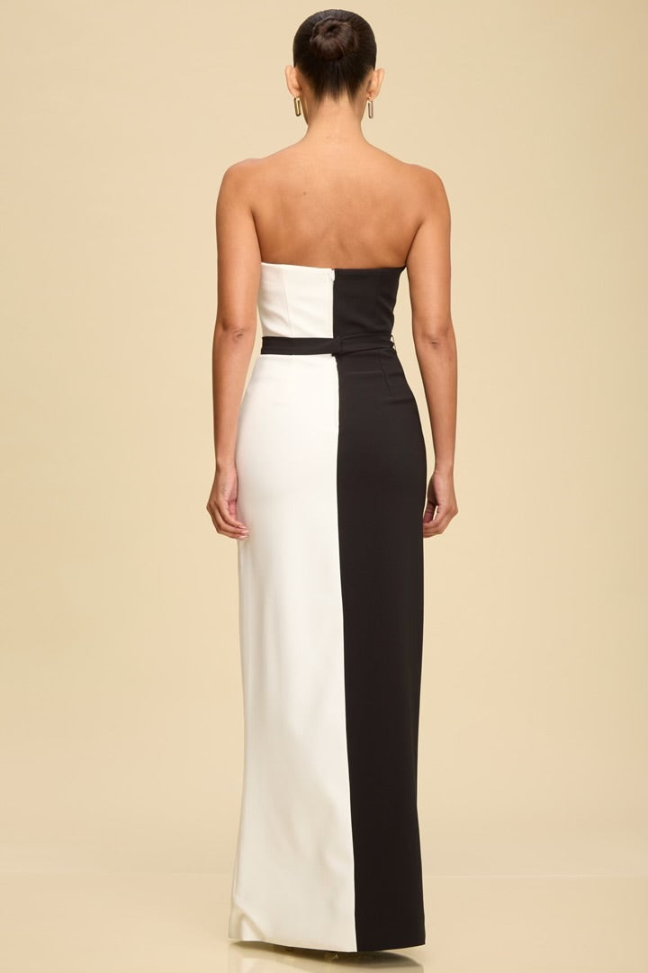 Its clean lines, structured bodice, and striking bow detail make it modern and bold, while the deep neckline and front slit add just the right touch of confidence. Icona feels polished, powerful, and effortlessly glamorous — without ever trying too hard.