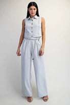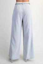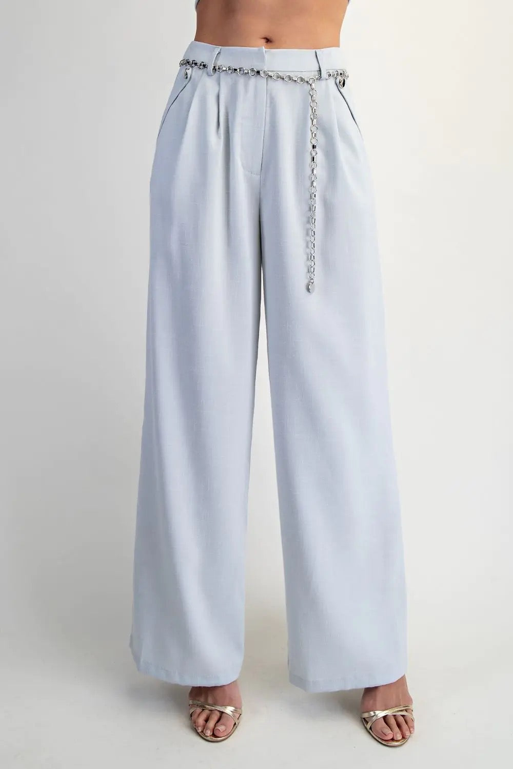 Designed with a graceful high waist and softly flowing wide-leg silhouette, these trousers create movement that feels effortless yet undeniably sophisticated. The luminous silver tone evokes serenity and strength at once, wrapping the figure in a cloud-like softness that elevates every step. 🩶🌙