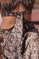 Featuring a structured crop top with cutout detail and matching wide-leg pants in a luxe animal print, this set brings high-fashion drama with everyday comfort. The fitted top highlights your silhouette, while the flowy pants add movement and elegance, creating the perfect balance between sexy and sophisticated.