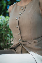 The Citrine Set is the definition of quiet luxury. Crafted in a rich neutral tone, this tailored vest and matching trousers create an effortlessly refined silhouette. The structured lines, sculpted waist and tonal belt give you a figure-flattering look that exudes elegance. The satin-finish buttons add just the right touch of sophistication without ever feeling flashy ✨.