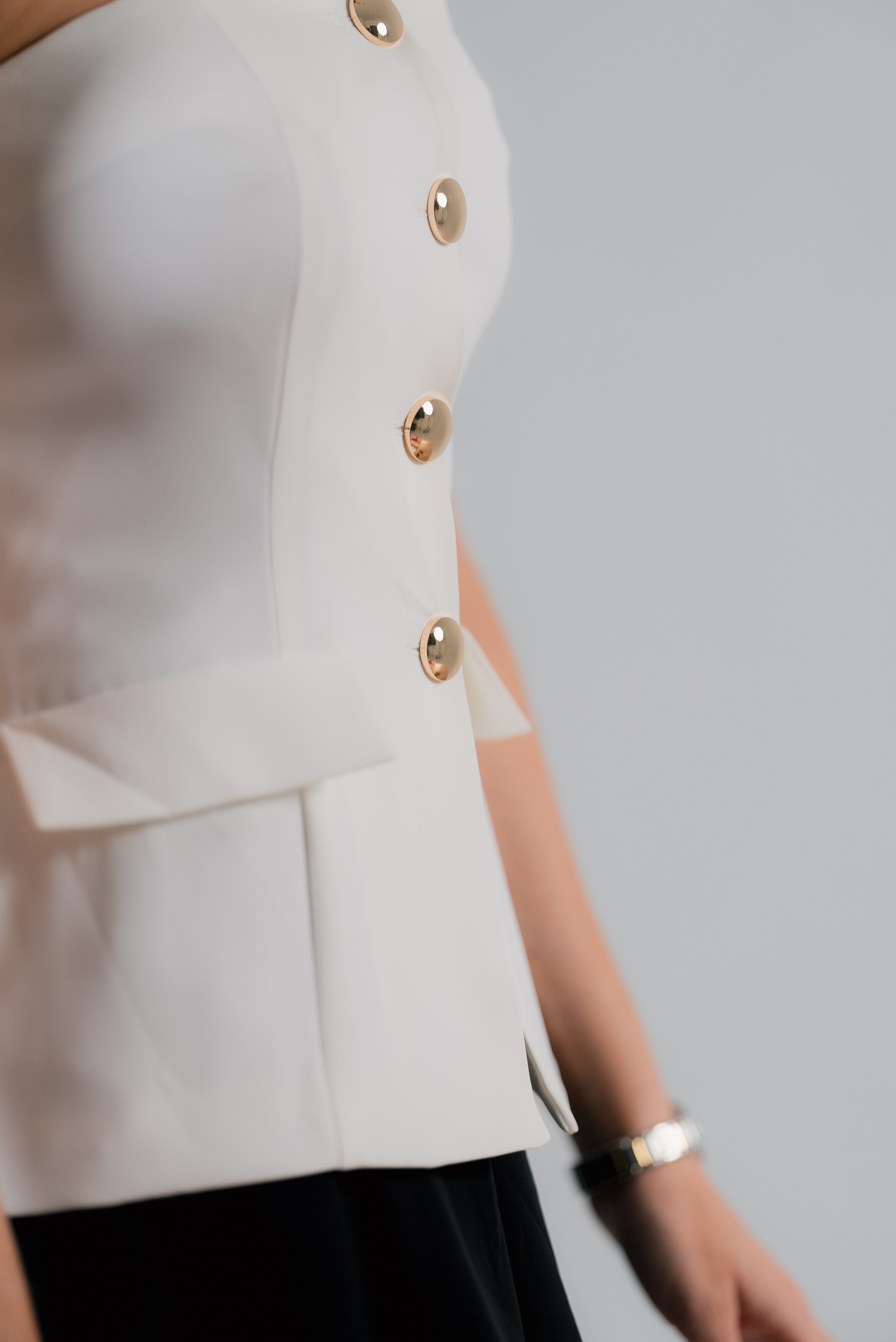 Meet the Côte Romper, a chic blend of confidence and sophistication. Designed in a crisp white tone with a structured, strapless silhouette, this piece flatters effortlessly while giving you that modern, editorial look. The gold statement buttons add a touch of luxury 💛, and the tailored front creates a refined, elongated shape that stands out in any setting.
